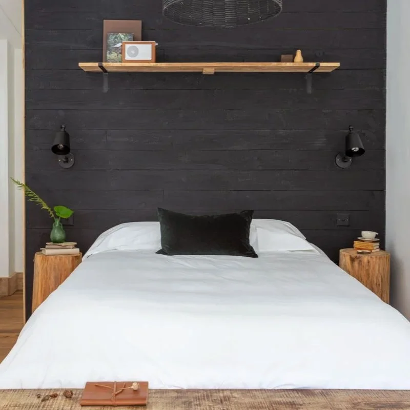 A modern timber cabin with a larger floor plan and various configuration options - perfect for self contained accommodation, a retreat space, or creative studio. The generous living space holds a double bed / sofa with options for a kitchenette, adjacent en-suite bathroom, hallway access and storage as required.